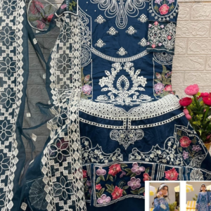 Navy Blue Cambric Cotton Unstitched Salwar Suit with Heavy Embroidery