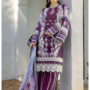 Buy Elegant Maroon Cambric Cotton Unstitched Salwar Suit with Heavy Embroidery & Muslin Printed Dupatta